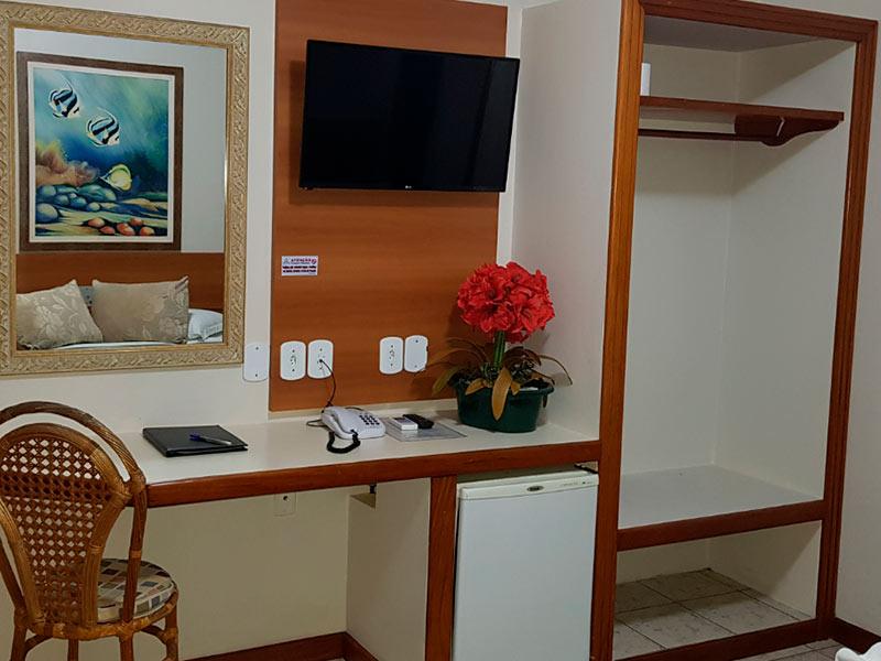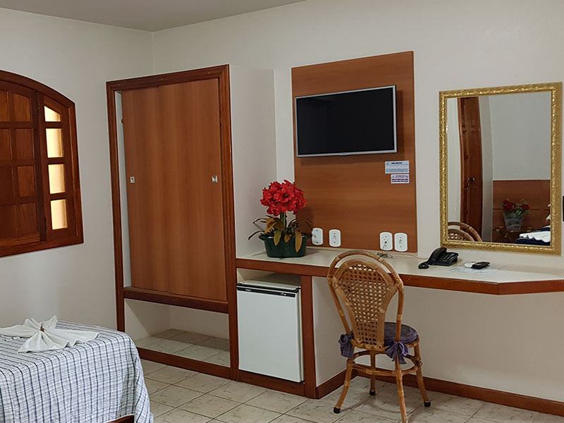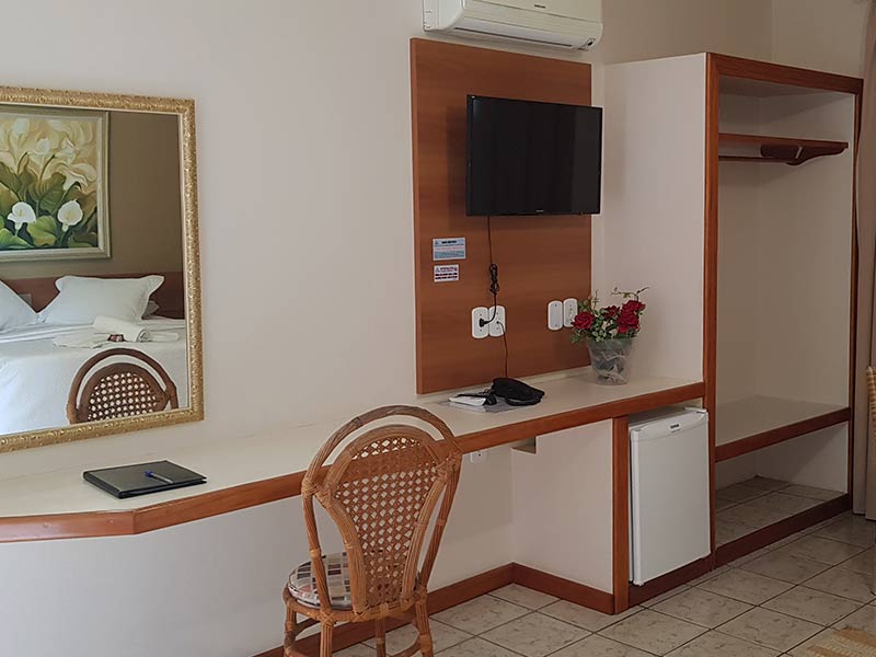 Apartamentos amplos e confortáveis, decorados exclusivamente para tornar o ambiente simpático e acolhedor.